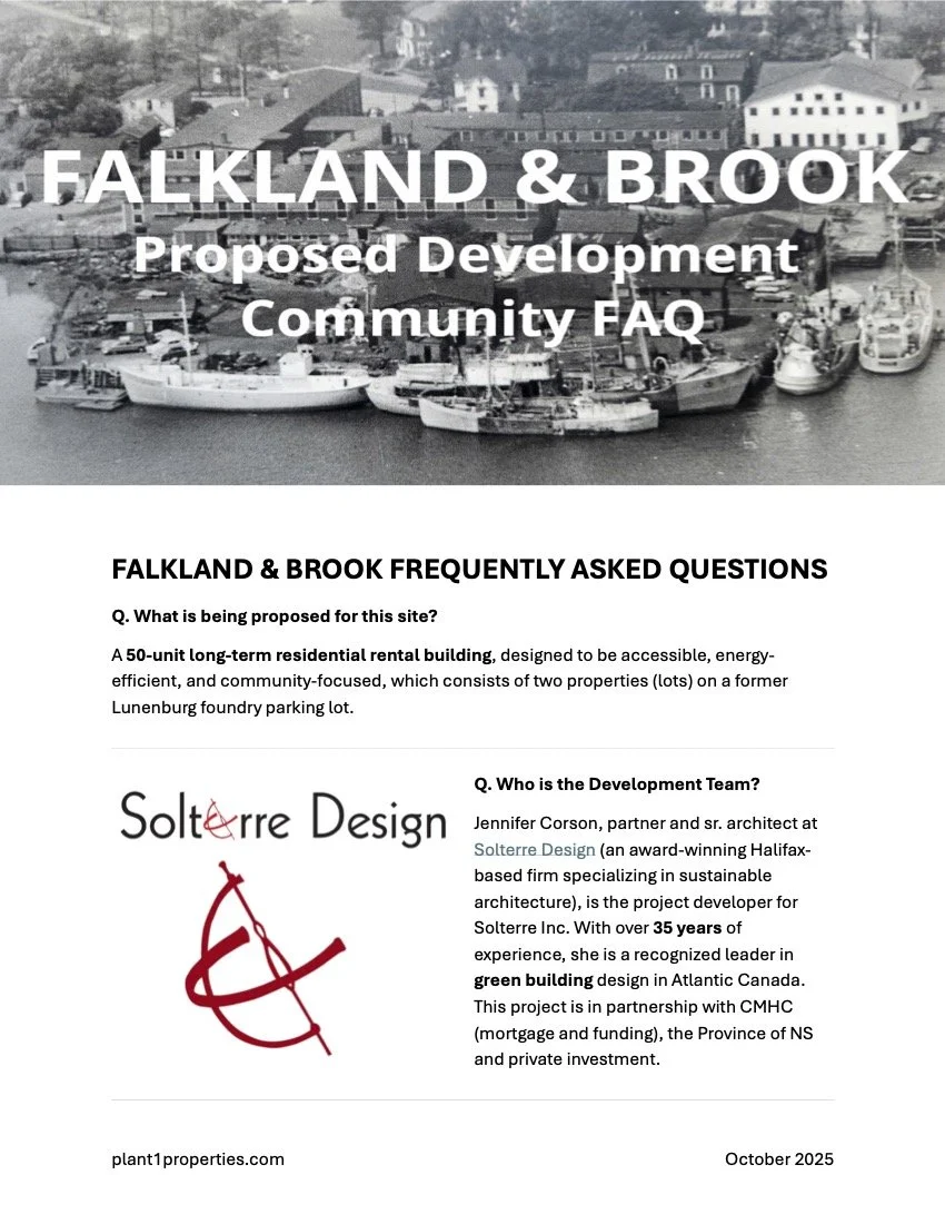 The Falkland & Brook project location is centrally located and immediately adjacent to all required Town of Lunenburg servicing.